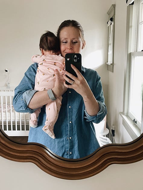 I’m also working my way back into my usual strength training routine with the ladder app – I switched to team embody, a pilates based program, to emphasize unilateral movements and target core work. To start dipping my toes back into cardio,, I have also been doing an “at-home barry’s bootcamp” style approach once or twice a week – I do the workout as programmed, but add in 10 minute walk-jog intervals on the treadmill in between the blocks. The result is a workout that feels hard without being overwhelming – but is still satisfyingly sweaty enough to keep me from doing too much too soon. Highly recommend if you’re postpartum (or unwilling to pay for Barry’s bootcamp classes).