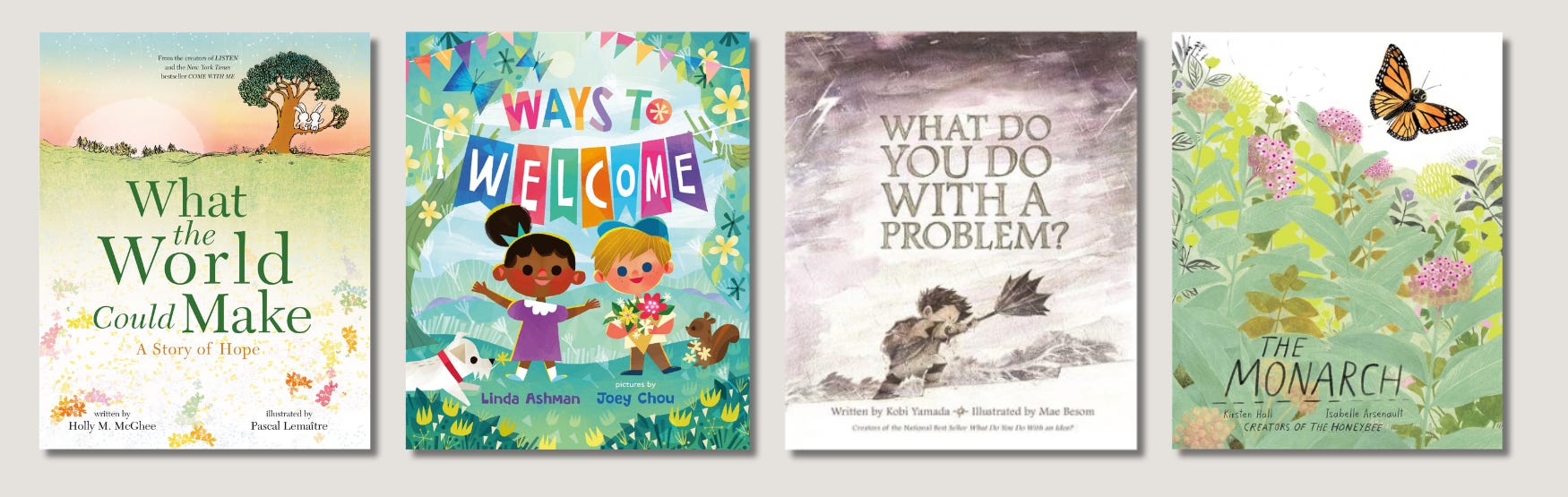 Rapid fire! What the World Could Make by Holly M. McGhee is a sweet celebration of nature and the seasons, following two bunnies as they marvel and appreciate everything the world has to offer. Ways to Welcome by Linda Ashman & Joey Chou is a lovely book for school aged children that highlights all the different ways to welcome, celebrate and be kind to others. What Do You Do With A Problem by Kobi Yamada & Mac Besom was a really lovely book for the “threenager” phase – the book has great visuals to help a kiddo understand how problems can feel, and how talking about and trying solutions to the problem can help it go away.