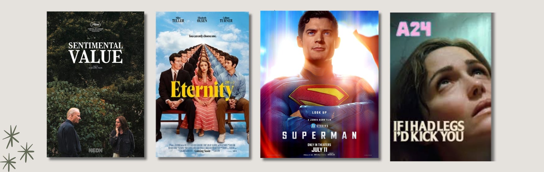 I may never stop talking about how much I enjoyed Sentimental Value (reviewed here) - a recommendation for the Big Feelings girls among us. I was also surprised by how much I enjoyed Eternity, although I maintain that the only right choice was escaping with the best friend to Paris.
