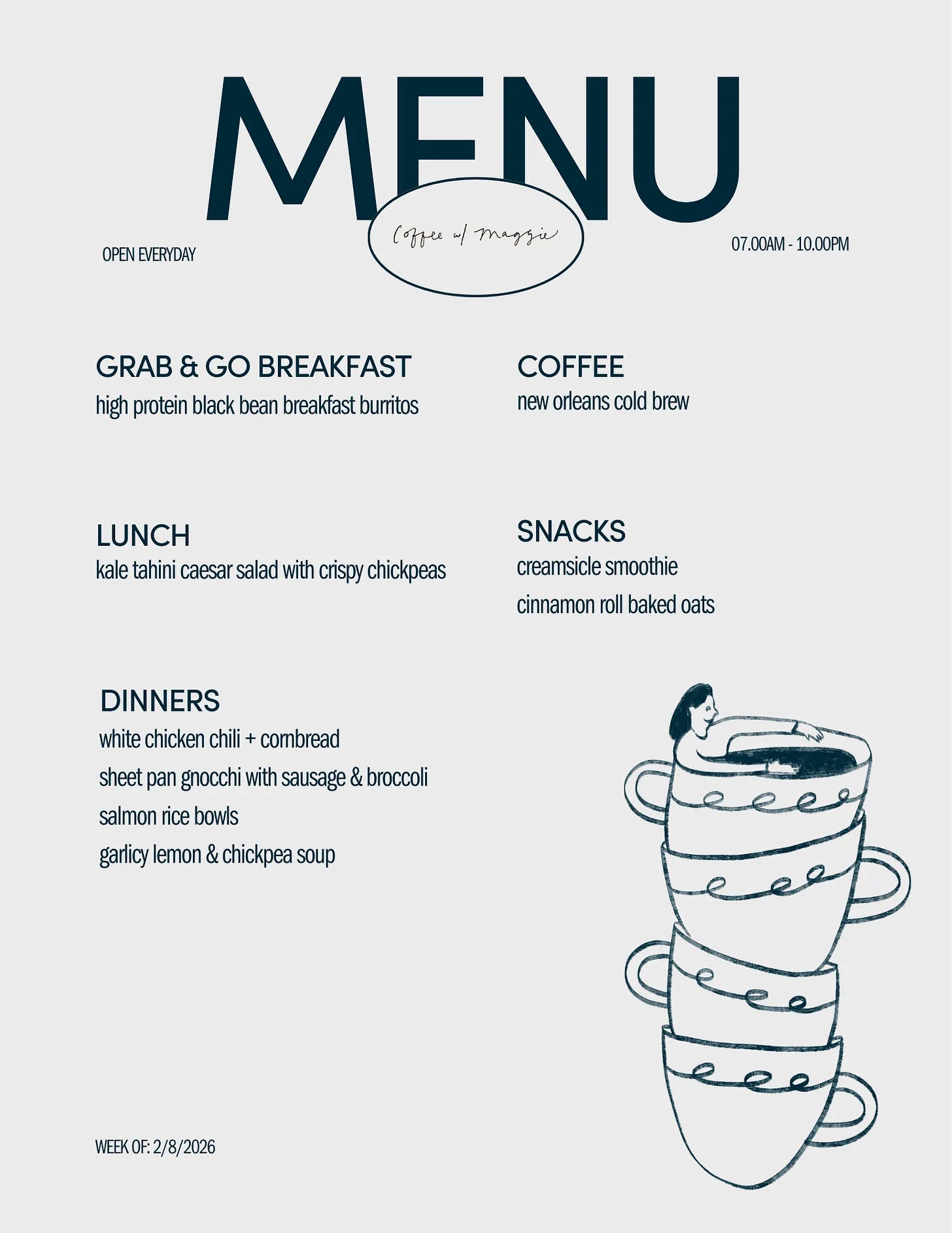 Omg the menu design! I do a weekly meal plan but it’s nowhere near as chic. Will be trying it out this March 🌼🌞