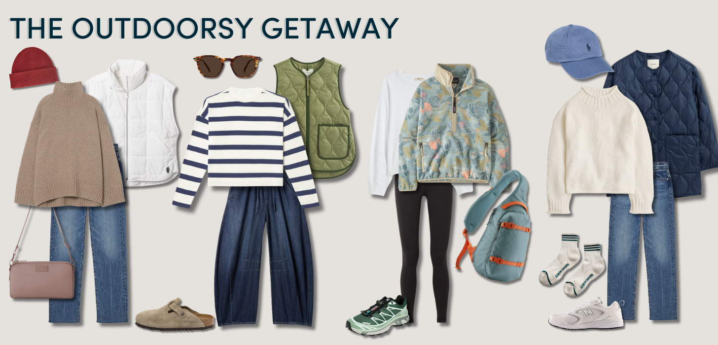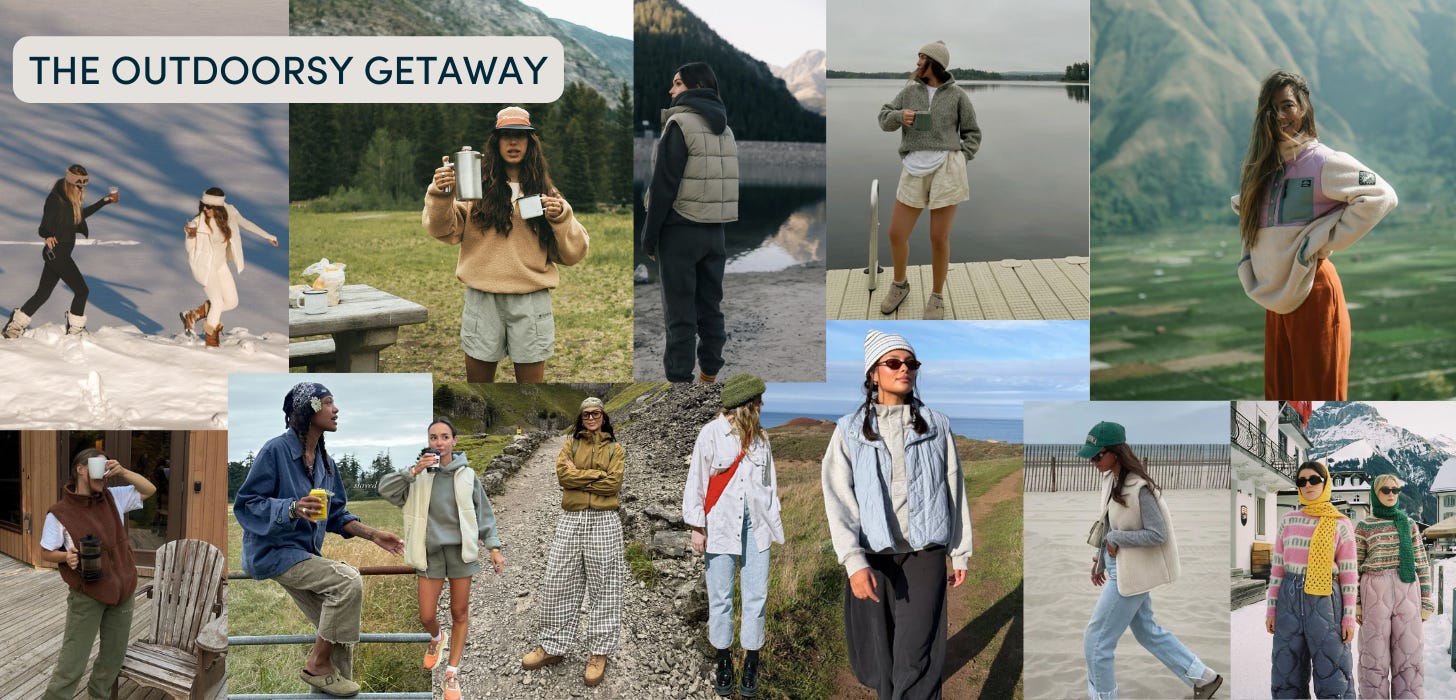 The details: We’re working with forest green, oatmeal, faded denim and rust - early, grounded, and a liiiiiittle cinematic against a mountain or lake background. The key here is texture for the transition from winter to spring: cozy fleeces, broken-in denim, comfortable wool layered over effortless cotton. Pieces that can carry you through an early morning hike to drinks around a campfire without missing a beat.