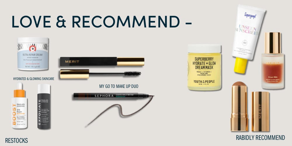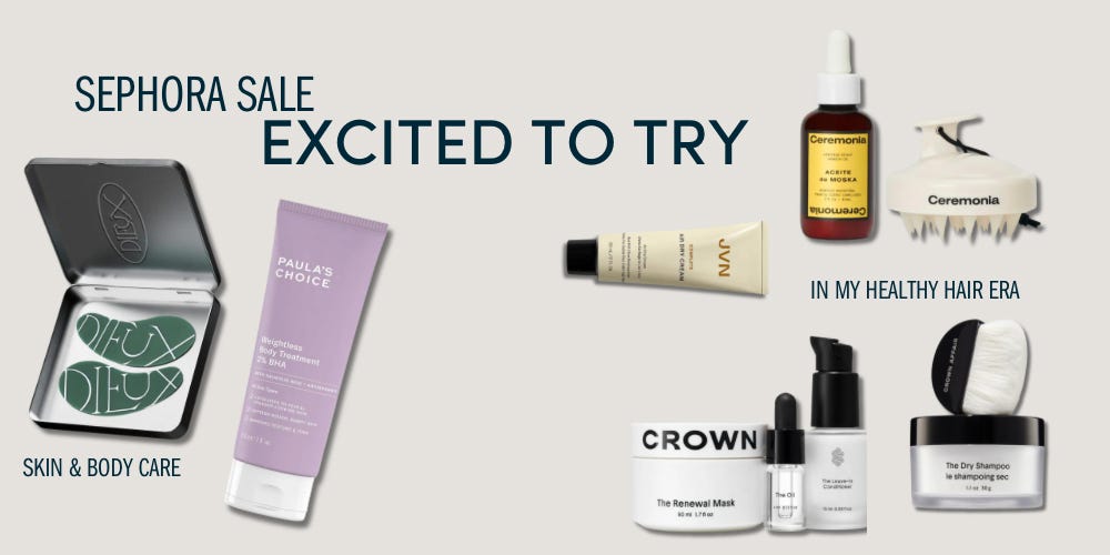 Y’all it’s that time of year again: the Sephora (triannual?) sale. Begrudgingly, I do my best to align any hefty skincare and beauty spend for when I can at least get a discount on it (although I love the beauty accounts that do great research to tell you when the deals are better elsewhere. Doing the lord's work). I tend to be a minimalist when it comes to makeup (mostly just eyeliner and mascara, so not many beauty recs here) and spend more time and energy on skincare and hair.
